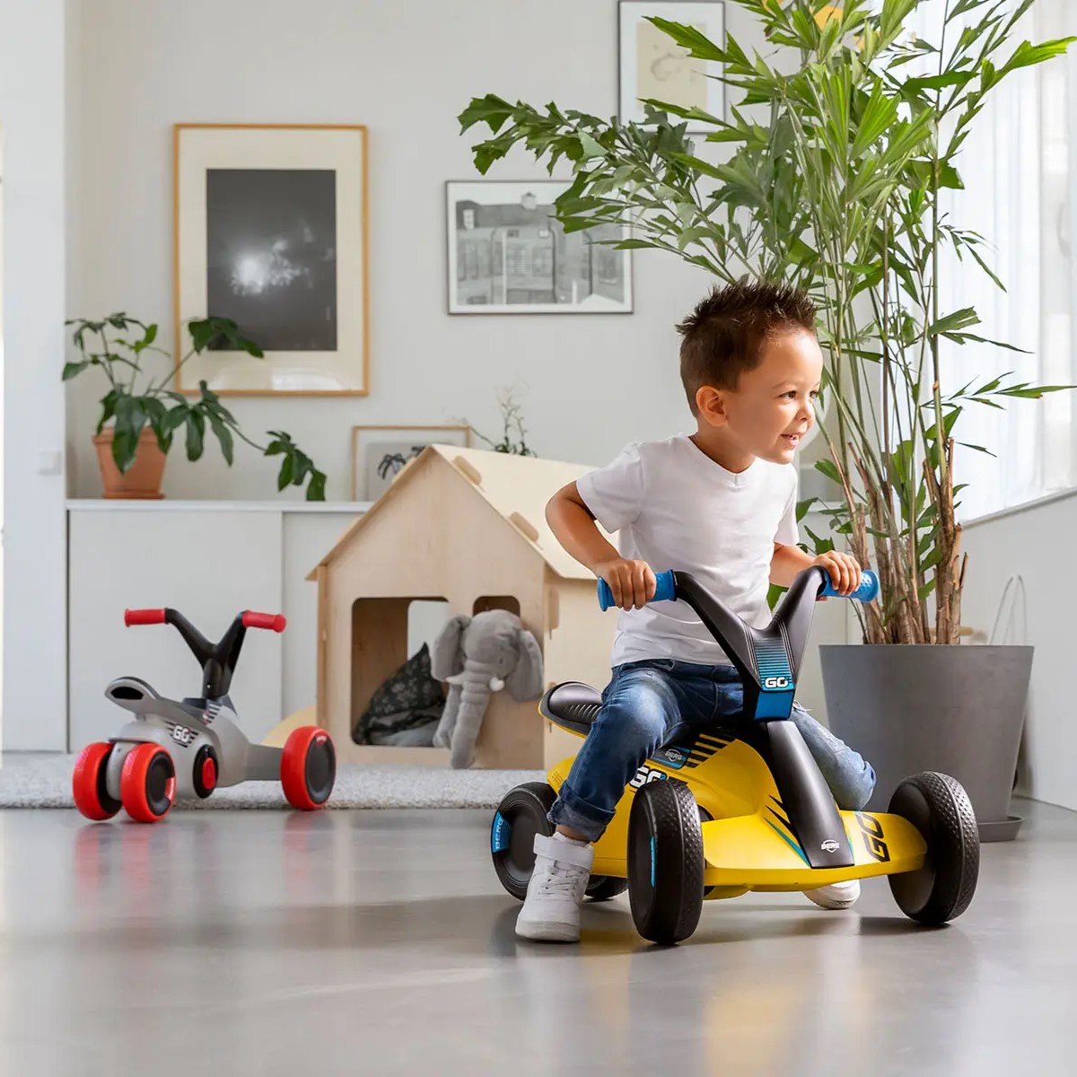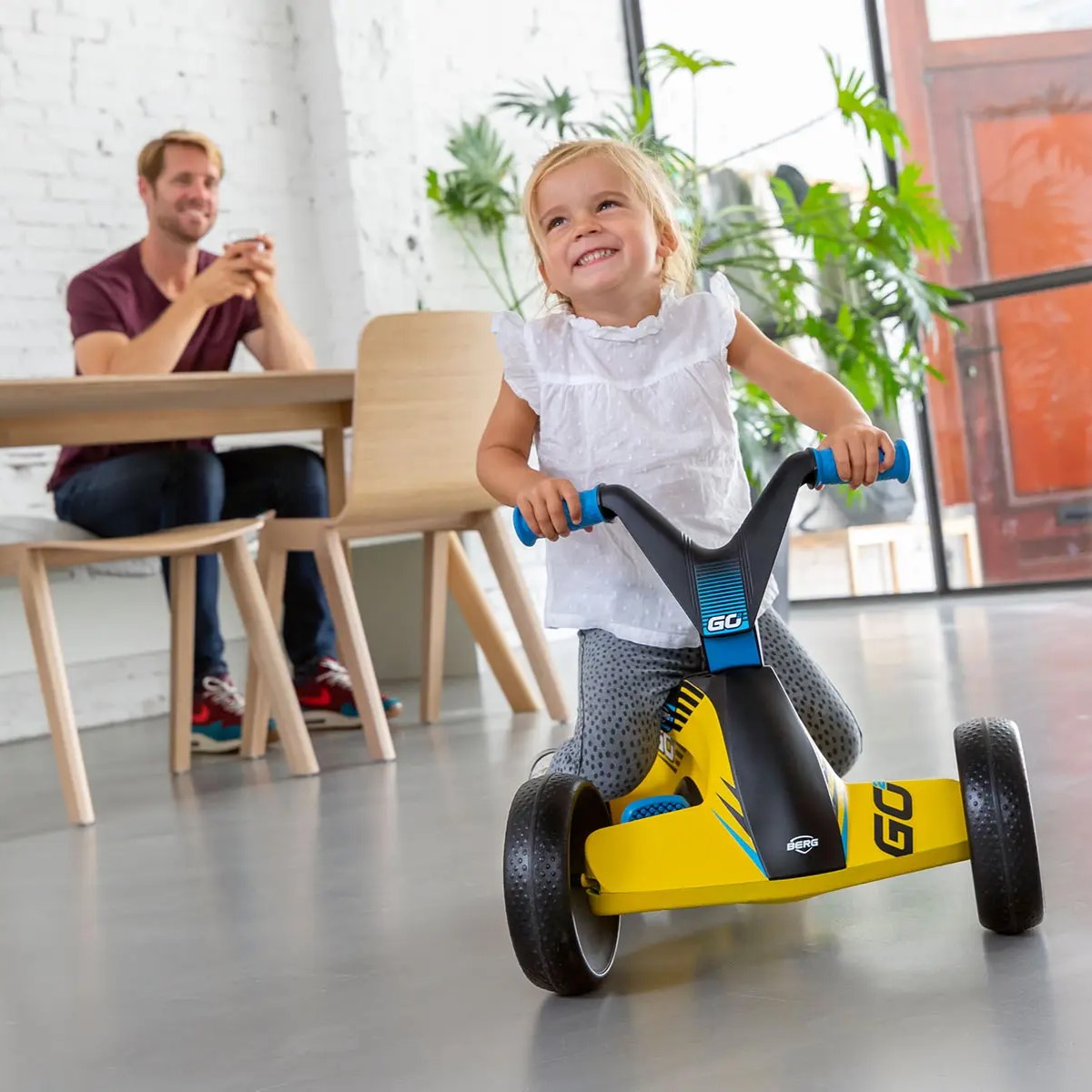 Nikada nije rano da djeca počnu razvijati svoje motoričke sposobnosti. BERG pomaže djeci da učine upravo to sa nagrađivanOm BERG GO2 2u1 guralicom. Od navršenih deset mjeseci djeca mogu izlaziti i hodati na ovoj jedinstvenoj kombinaciji guralice za hodanje i vozila na pedale. Ovo je zgodno, jer nakon što djeca savladaju guranje s GO2, mogu odmah preći na učenje pedaliranja. Djeca mogu koristiti BERG GO2 u zatvorenom i na otvorenom. Kompaktni model se lako kreće oko stolica i stolova.
