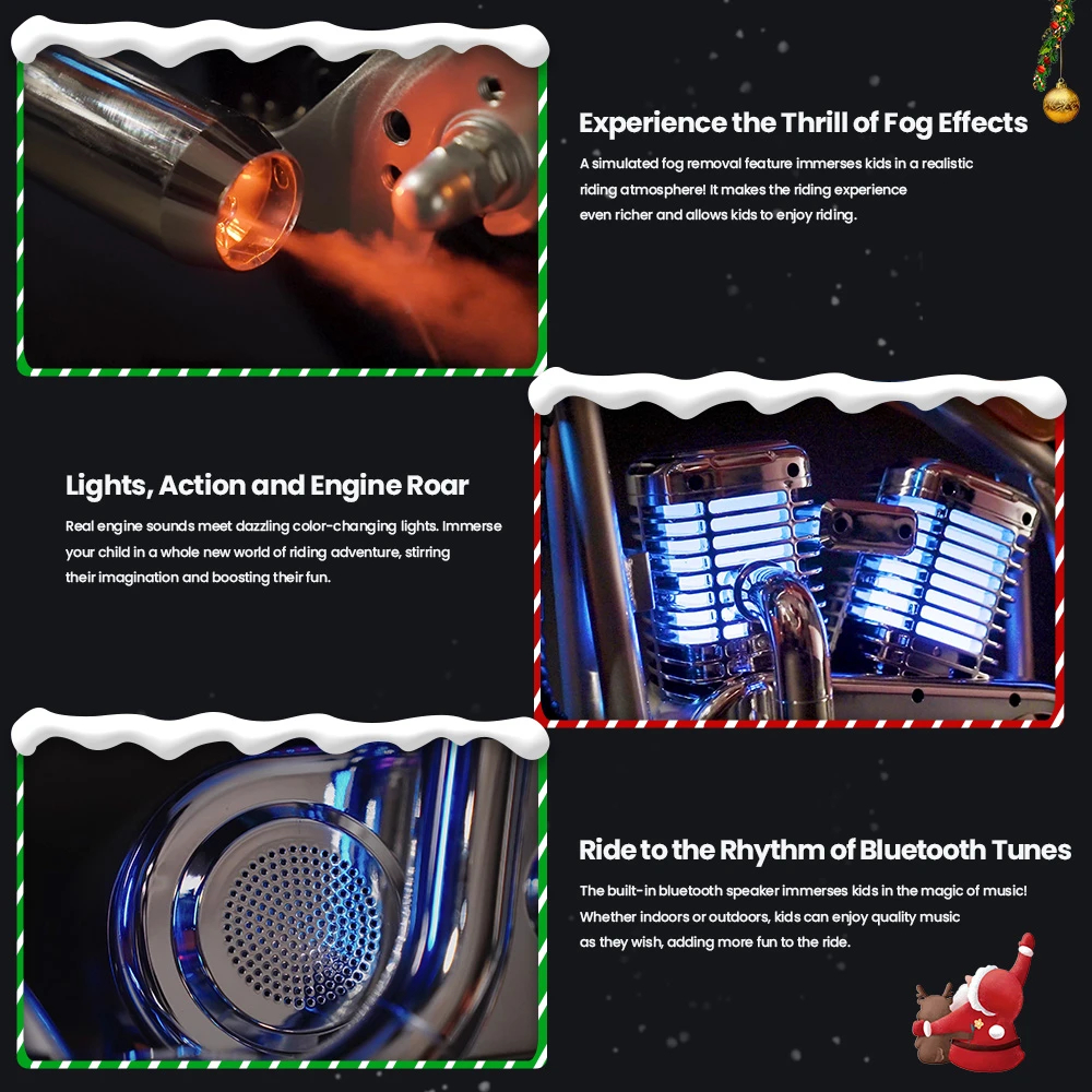 Cruiser 12 Pro (APP) dječiji električni motocikl dolazi sa simuliranom funkcijom ispuštanja magle, koja upija djecu u realističnu atmosferu vožnje! Kao da su usred avanture u gustoj magli. Ovaj uzbudljivi specijalni efekat čini iskustvo vožnje još bogatijim i omogućava djeci da uživaju u vožnji.